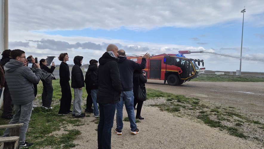 Les soldats du feu sont trente à travailler sur la plateforme aéroportuaire. "Nous sommes des pompiers de formation urbaine, nous passons ensuite une formation complémentaire en aéronautique, validée par le préfet", explique Stéphane Rabille, formateur au sein du SSLIA. Les élèves restent émerveillés devant les véhicules. Un premier, qualifié de véhicule de péril animalier, sert à effaroucher les oiseaux présents sur les pistes d’atterrissage et de décollage. Une autre mission est la vérification de l’état des pistes. Trois camions sont dédiés à l’extinction des incendies. "Un camion garantit 12 100 litres exactement d’agent extincteur pour éteindre le feu. L’objectif est d’empêcher qu’il ne rentre dans le fuselage. Les moteurs sont toujours en chauffe pour agir le plus vite possible. Ils atteignent 80 km/h en trente secondes et peuvent cracher 3 000 à 4 000 litres de mousse en trente secondes." Les collégiens assistent en direct à l’exercice de projection de mousse. L’aéroport respecte une charte environnementale. L’eau pour les camions, mélangée à de l’air pour former la mousse, est de l’eau recyclée ou issue d’eaux de pluie. "Nous sommes 6 pompiers de garde tous les jours, des renforts urbains peuvent nous être envoyés pour nous seconder."